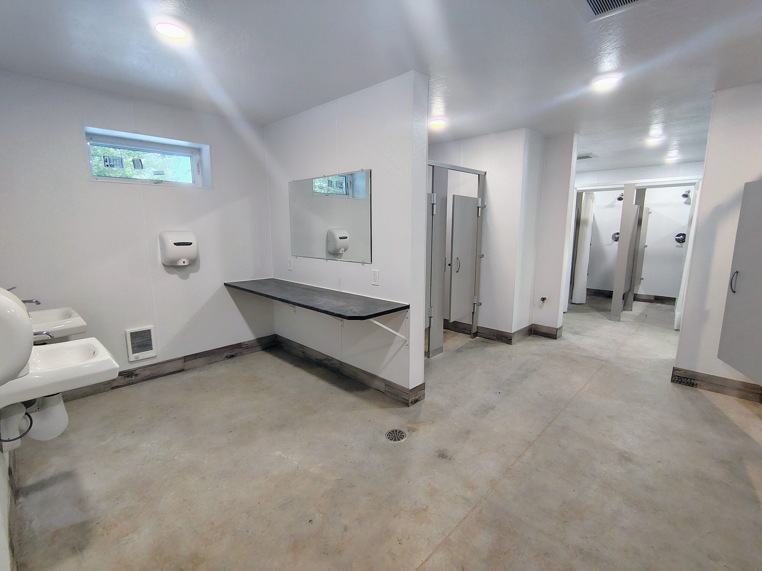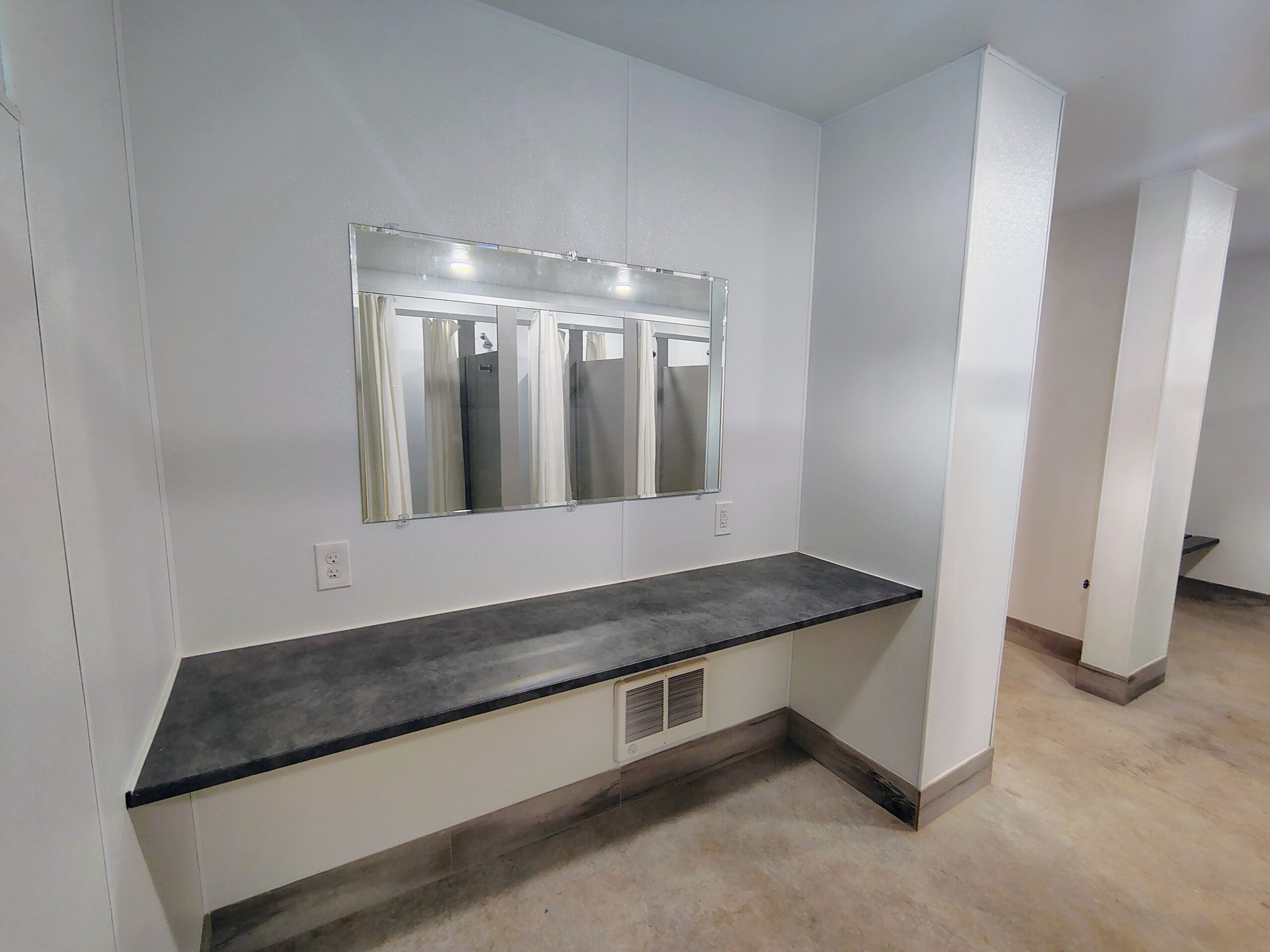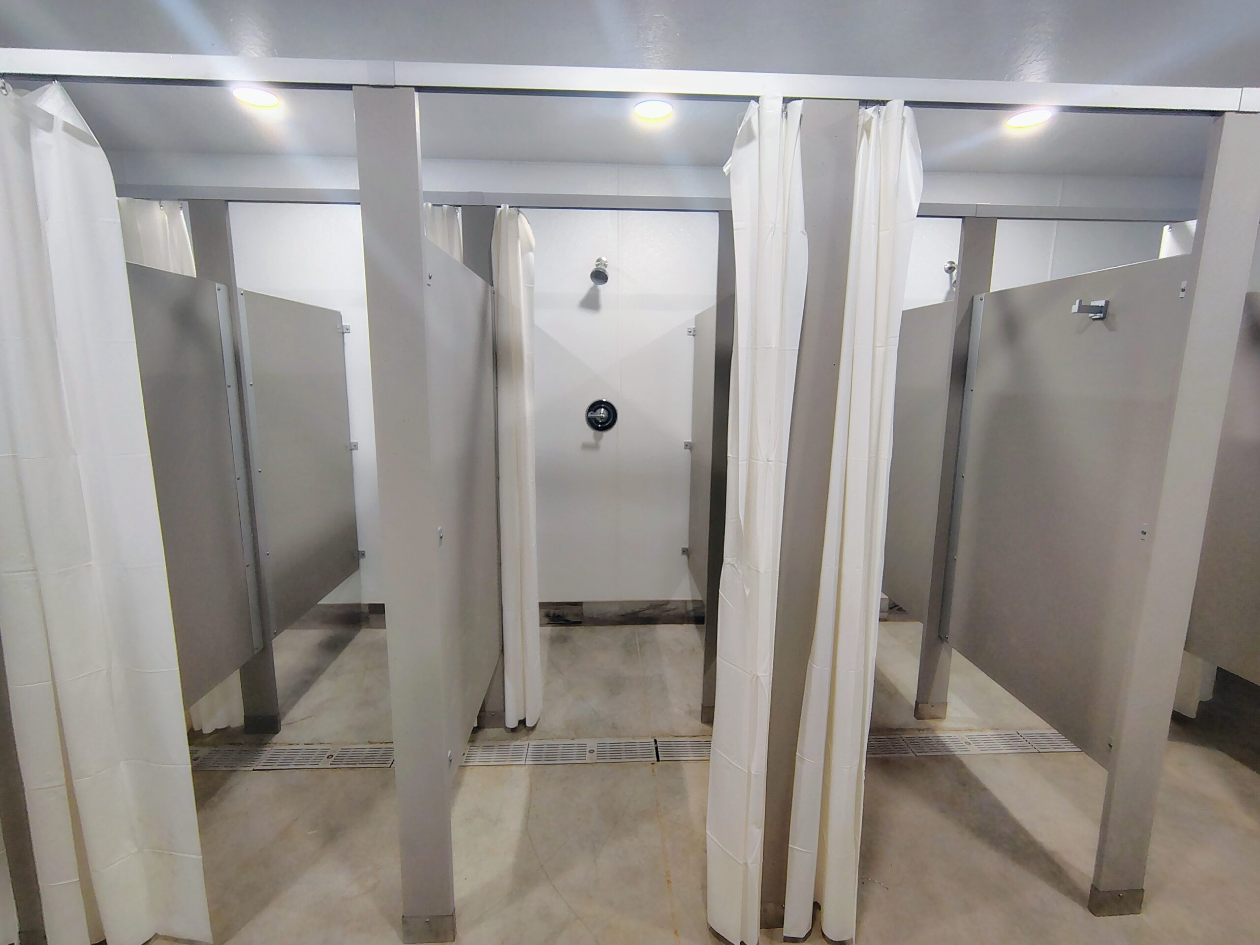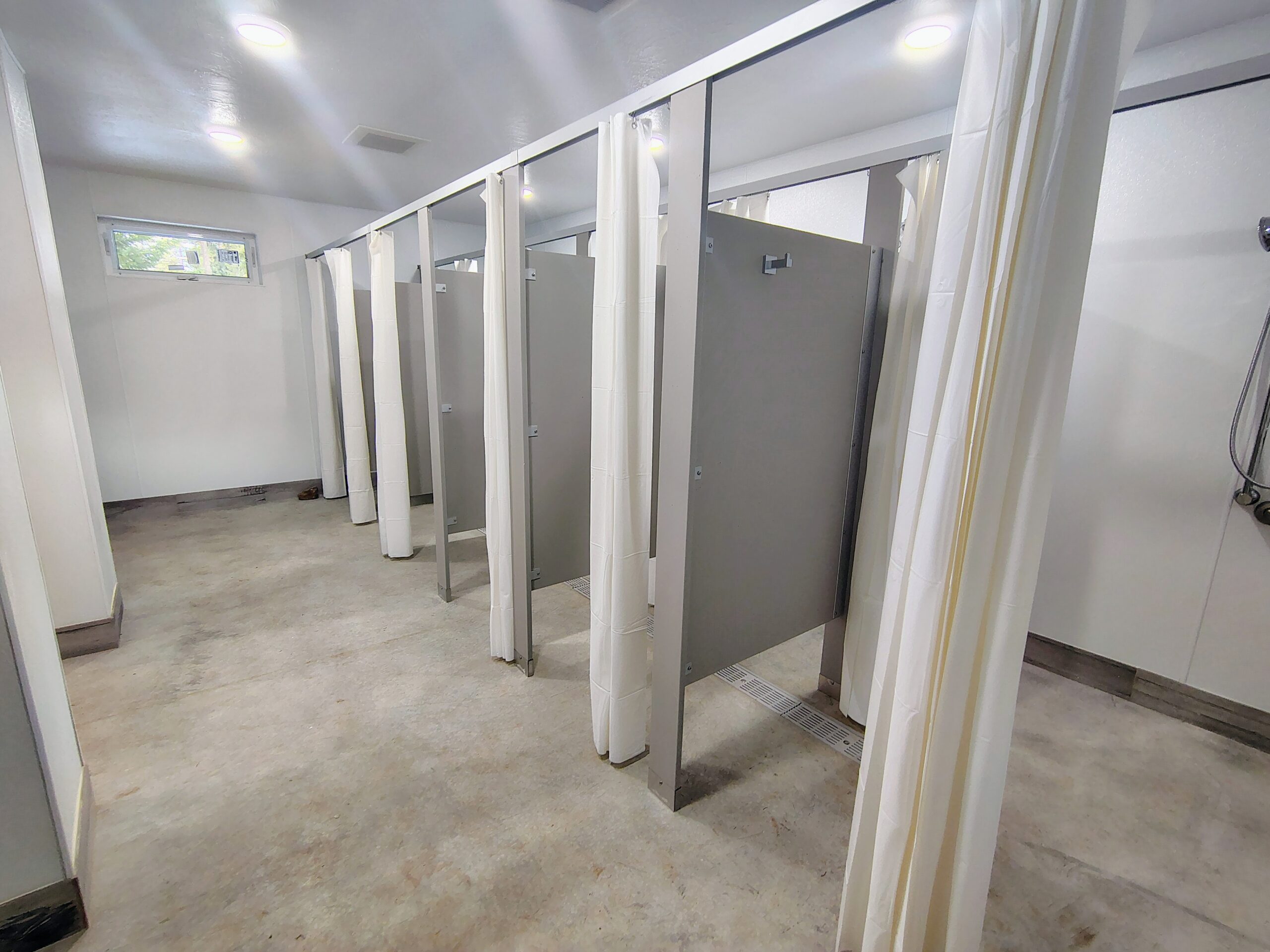 Our centrally located bathhouse is designed for the comfort and efficiency of large groups. This bright and well-ventilated facility features unlimited hot water and multiple private shower stalls to accommodate heavy group use. To ensure maximum flexibility for your event, the facility includes dedicated men’s and women’s sections that can be adjusted based on your group’s specific needs. For added convenience, the interior is equipped with waterproof flooring, benches for changing, and ample table space for personal belongings and bathing supplies.